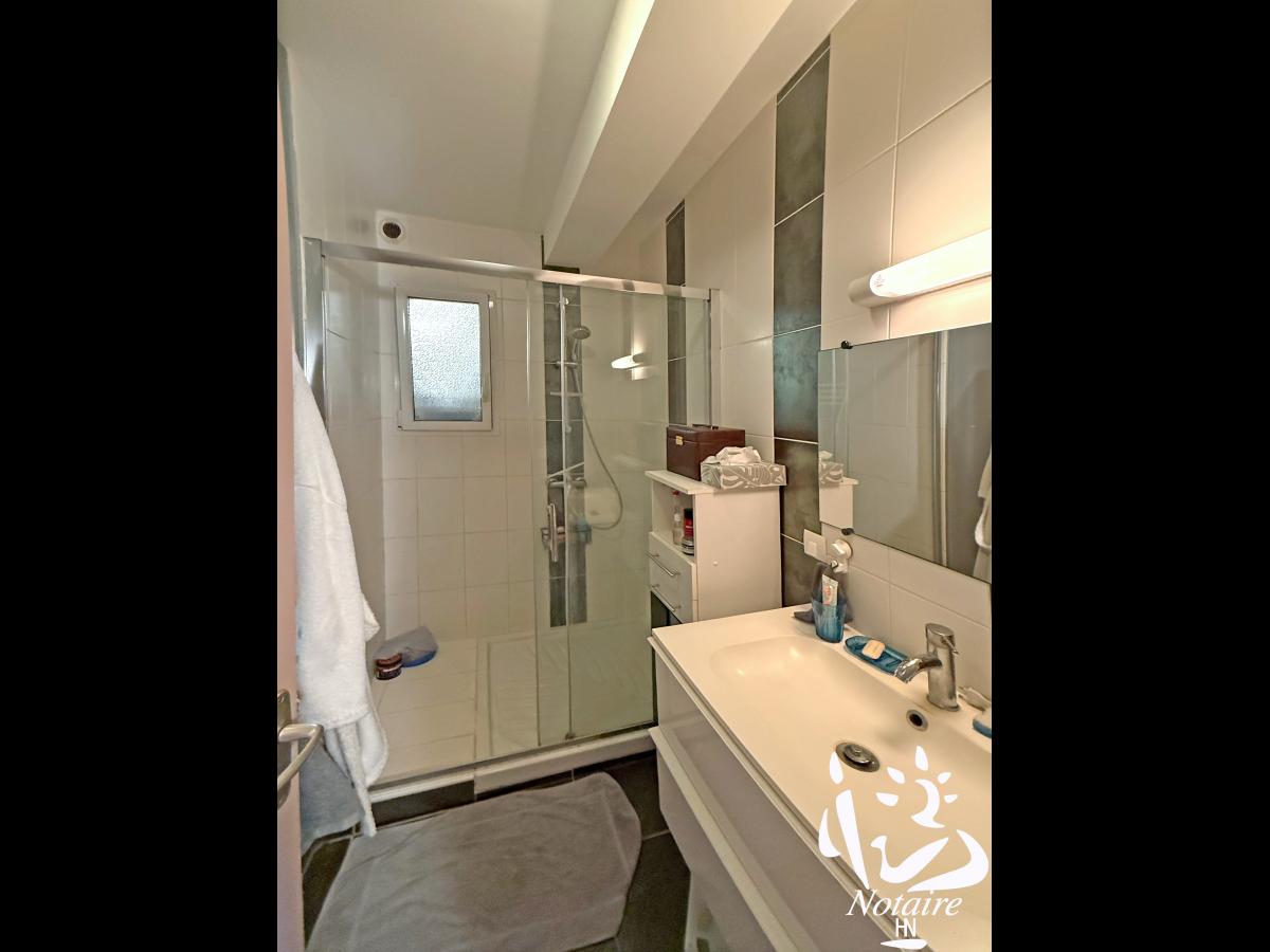 L'accès à la terrasse de 40 m2 exposée plein sud , se fait par la baie vitrée de la salle, sur laquelle il est bien reposant de lire un livre quand le soleil couchant nous caresse de ses rayons bien utiles en début de soirée.