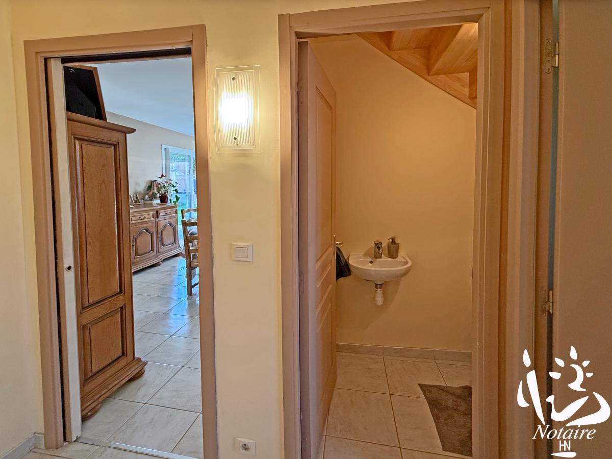 Cette agréable maison permet de vivre facilement au rez-de-chaussée avec sa chambre, sa douche et wc séparés ainsi que toutes les pièces de vie.