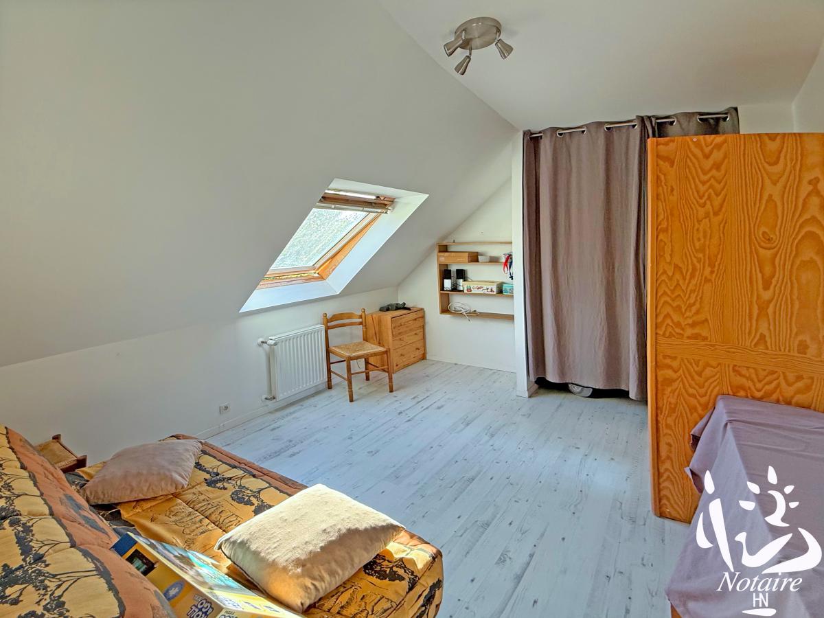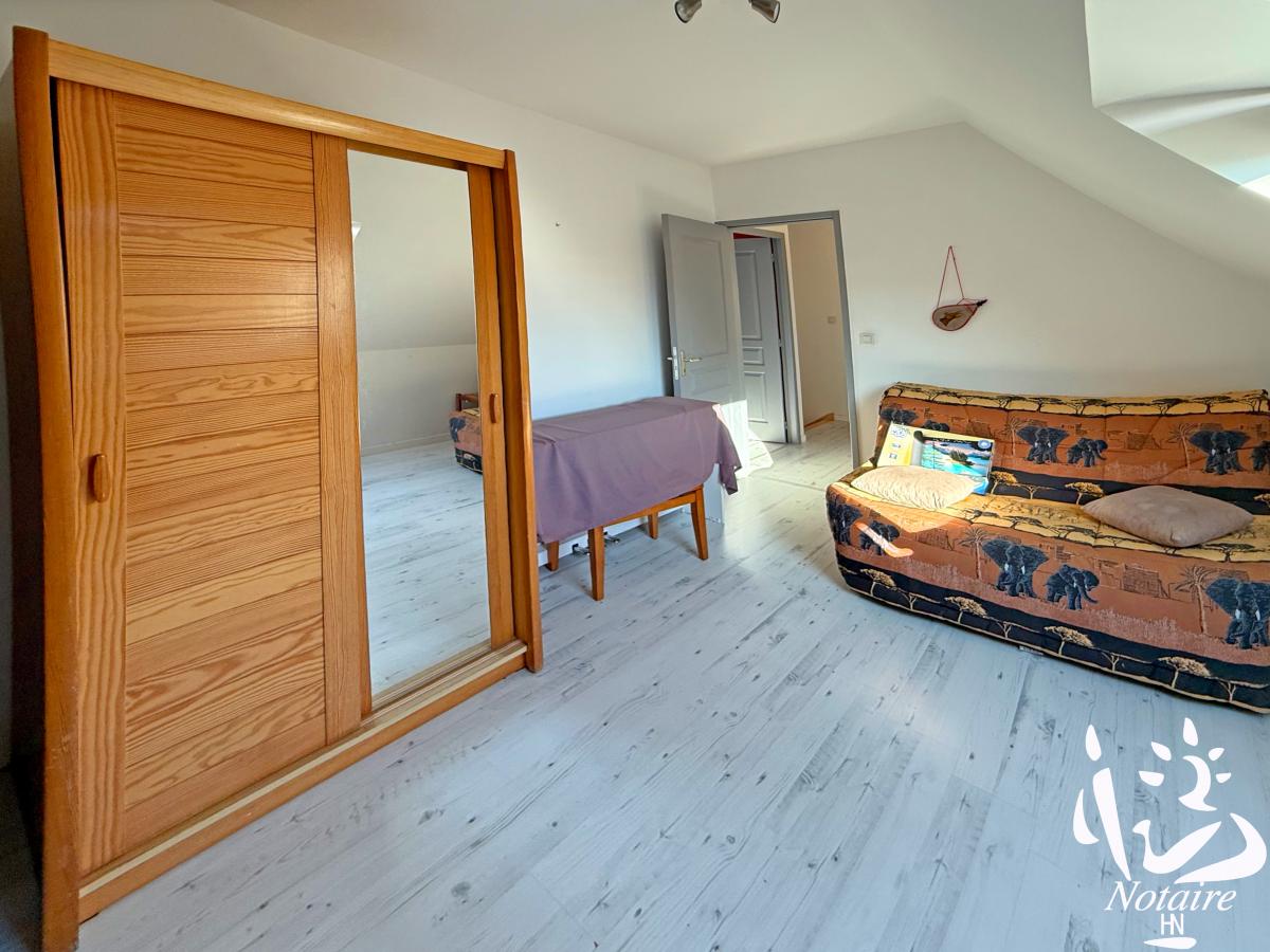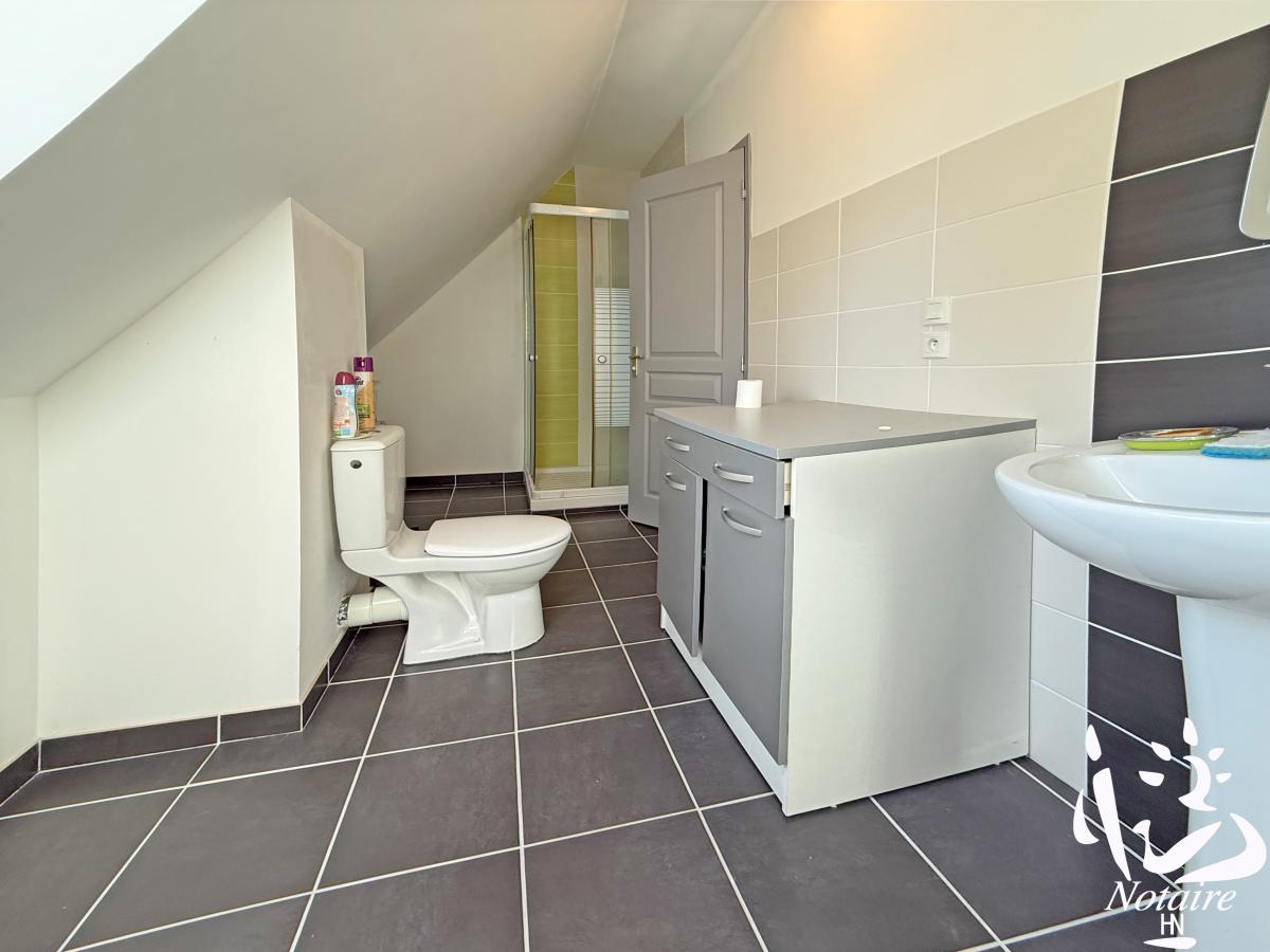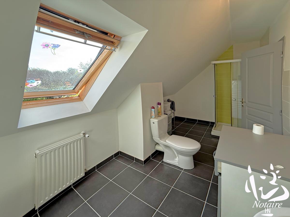 A l'étage, une salle de bain comprenant baignoire et douche, wc, lavabo, 3 chambres dont une qui s'ouvre sur le grenier de 14 m2 au-dessus de 1,80 m de hauteur.