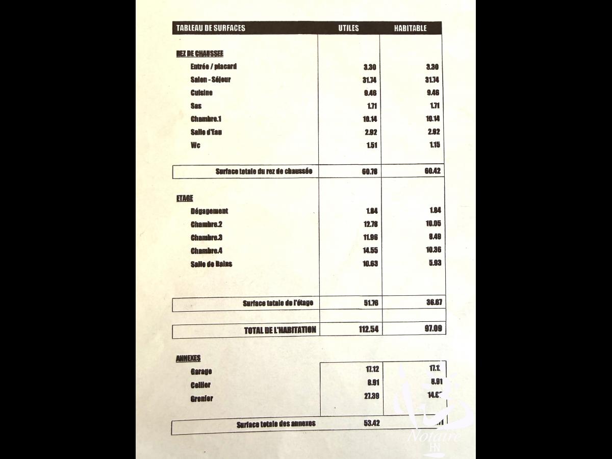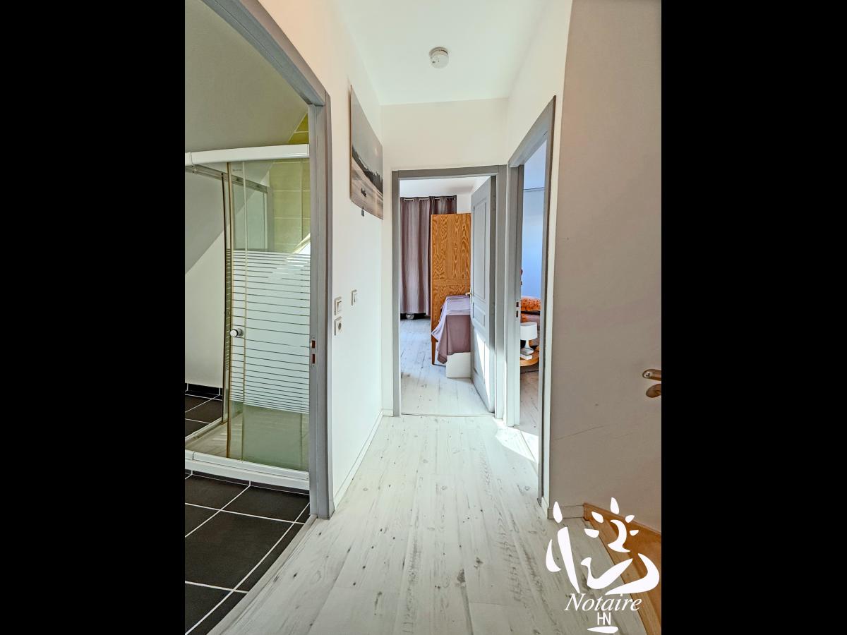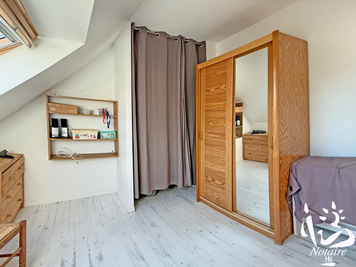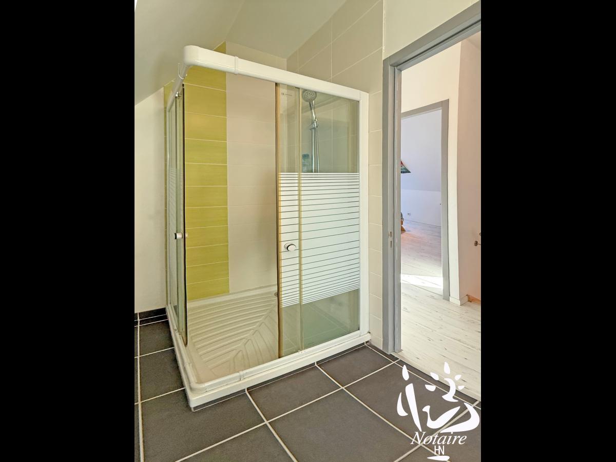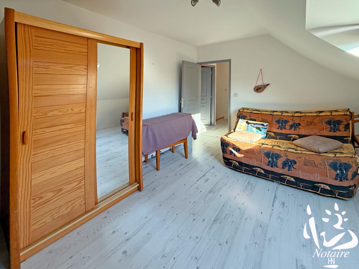 A l'étage, une salle de bain comprenant baignoire et douche, wc, lavabo, 3 chambres dont une qui s'ouvre sur le grenier de 14 m2 au-dessus de 1,80 m de hauteur.