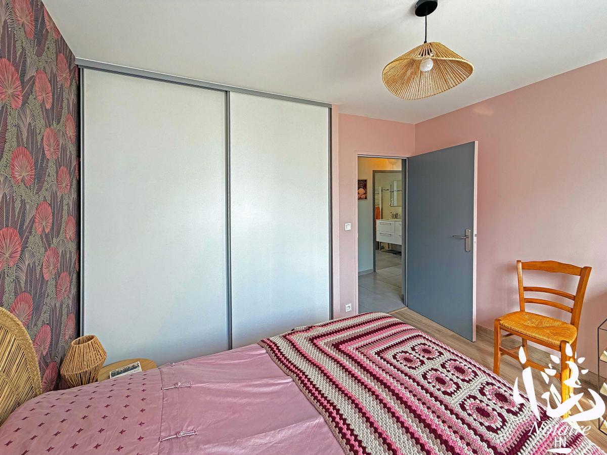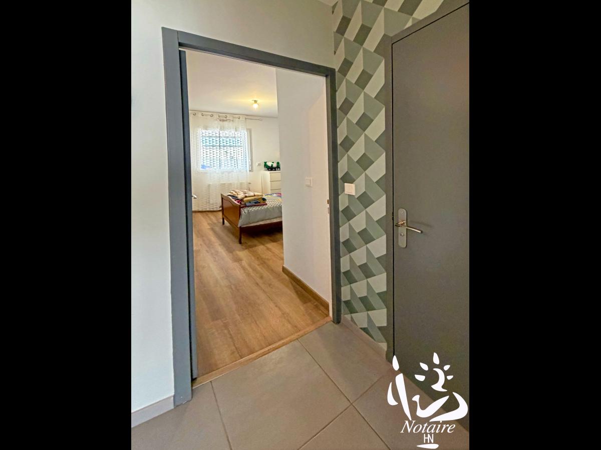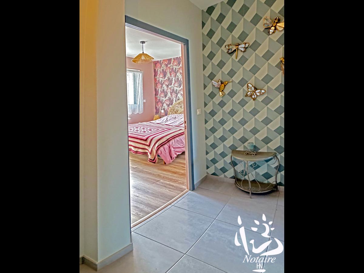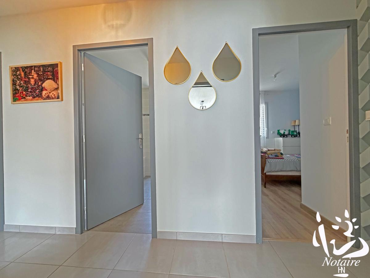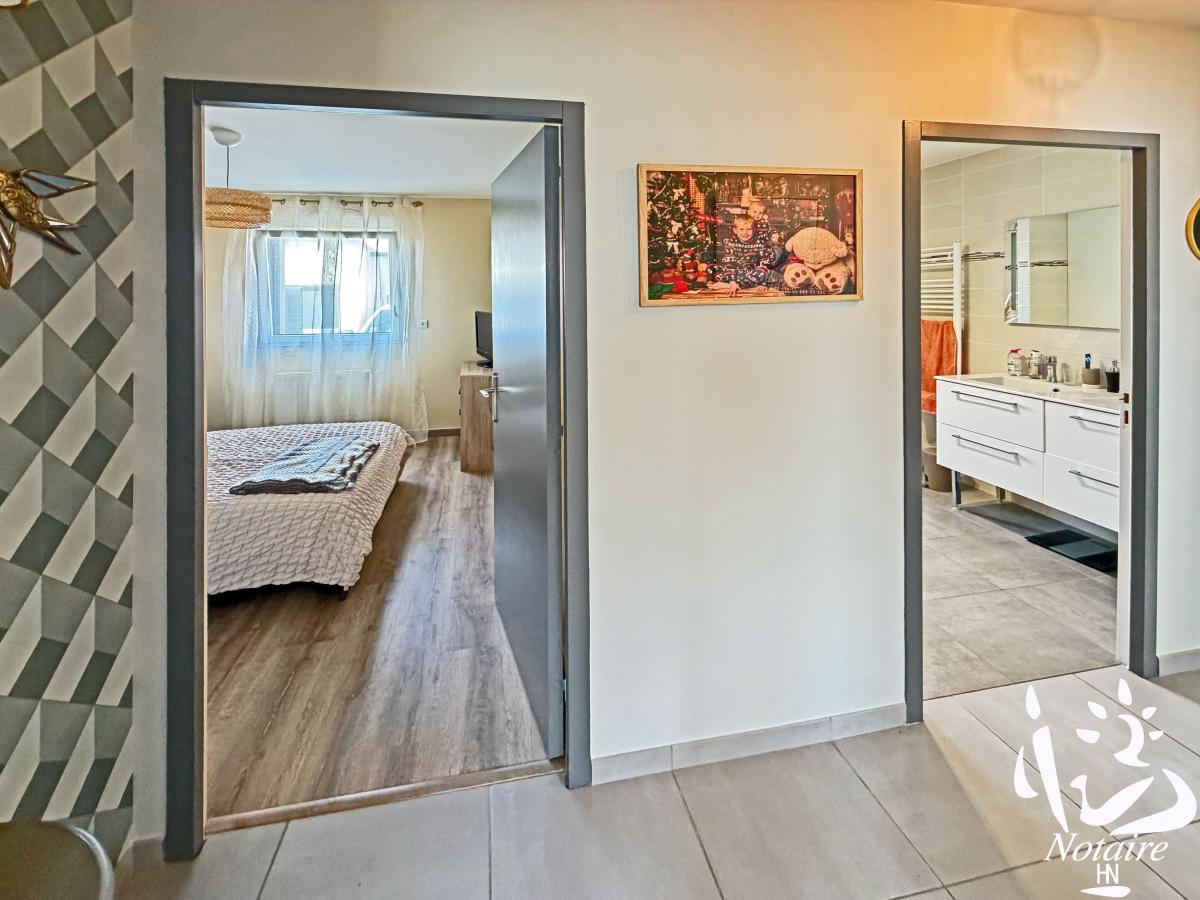 La distribution est fonctionnelle et agréable avec une organisation intérieure particulièrement bien pensée grâce à une séparation complète entre la partie jour et la partie nuit, dont l'accès est assurée par une porte à galandage, garantissant calme et intimité.