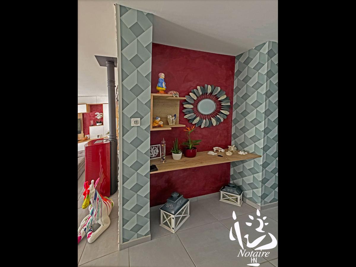 Les meubles de la pièce de vie ( murs de la télévision ) étant faits sur mesure par un artisan menuisier, restent sur place.